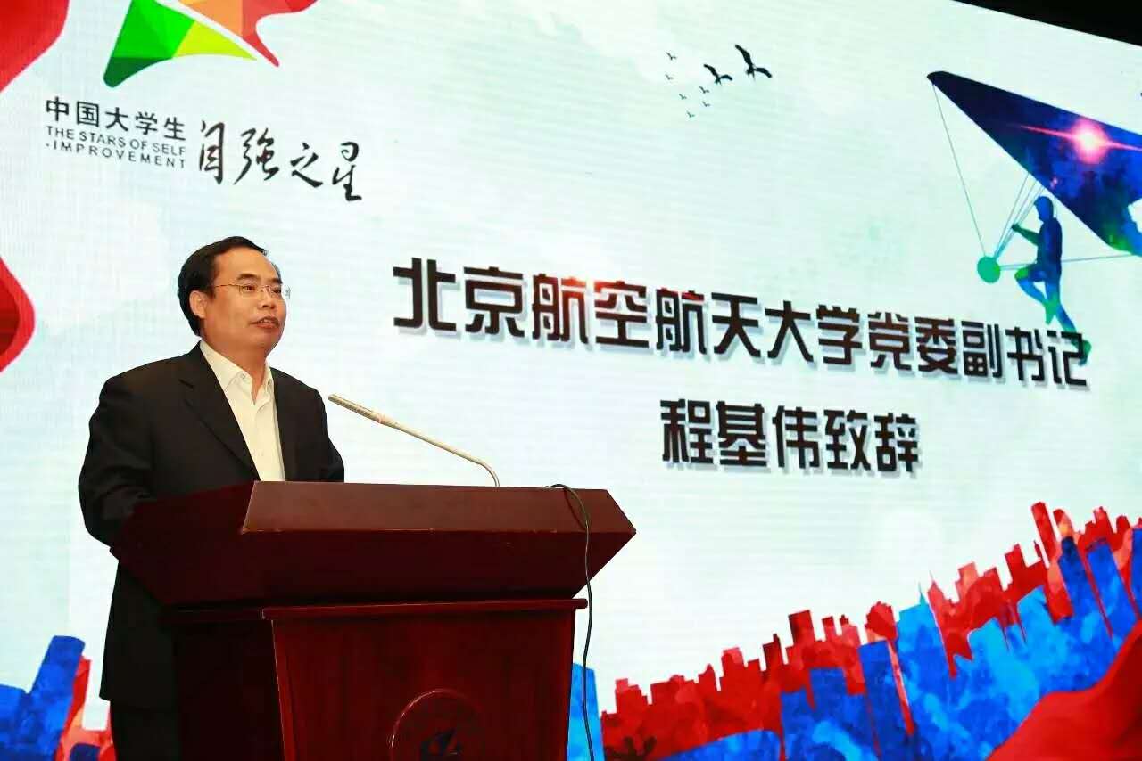 北京航空航天大学党委副书记程基伟在活动现场表示:榜样是鲜活的价值观,有形的正能量。寻访“中国大学生自强之星活动”开展至今,在全社会和大学生中产生了广泛而深刻的影响,激励了无数青年学生在困难中寻求突破,在突破中发掘创新,在创新中实现卓越的高远志向。