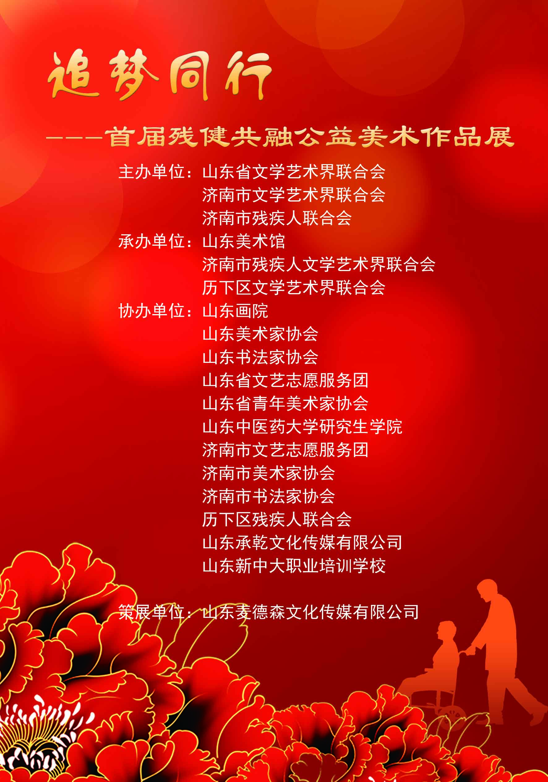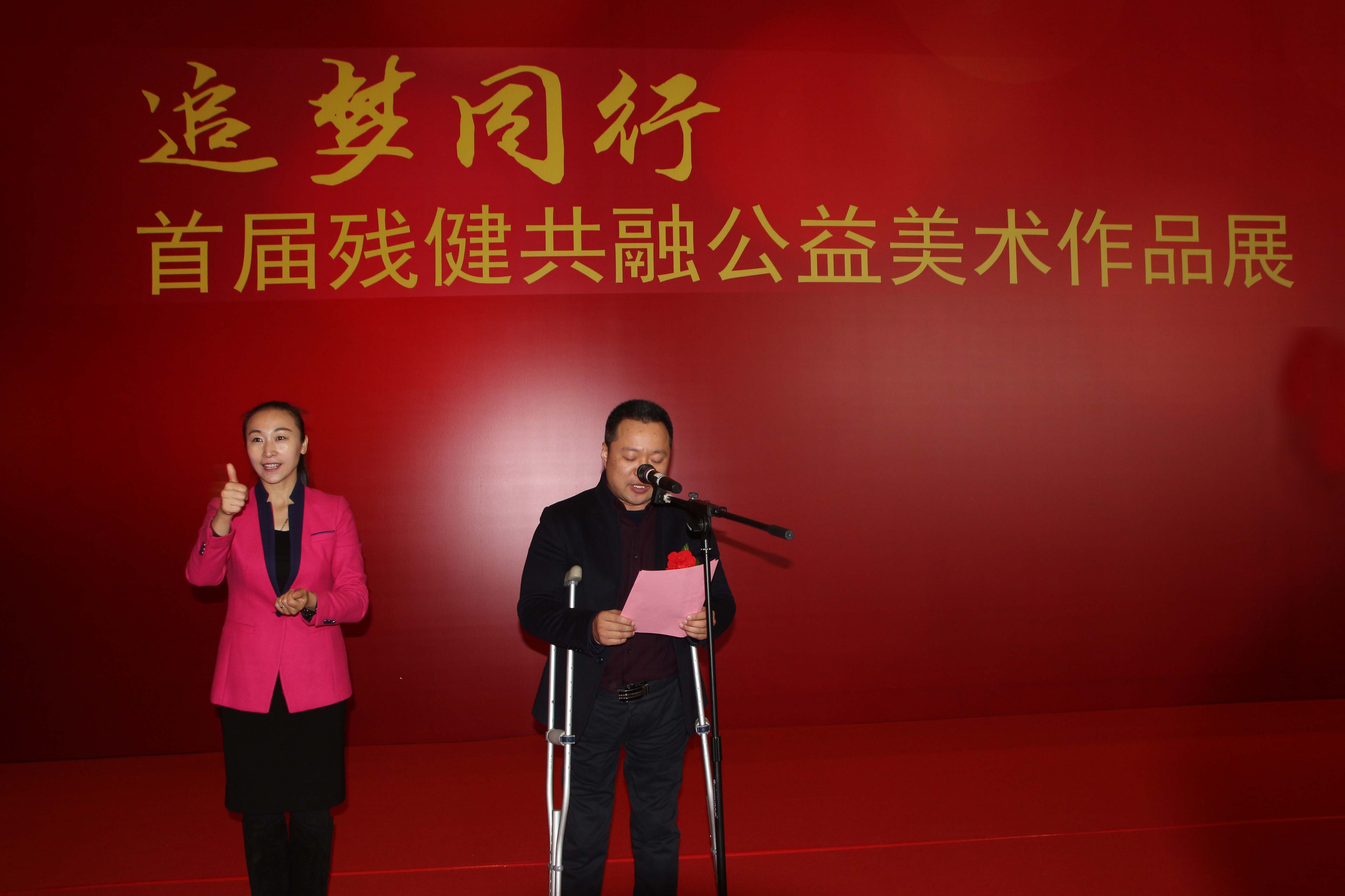 2016年12月13日,由山东省文联、济南市文联、济南市残联联合举办,开云手机站登入界面旗下的全资子公司山东麦德森文化传媒有限公司独家策划的“‘追梦同行’首届残健共融公益美术作品展”开幕式在山东省最高艺术殿堂——山东美术馆隆重举行。济南市委常委、市总工会主席、市残联主席团主席王以才;山东省文联副主席杨枫;山东中医药大学副校长张成博;济南市文联党组书记刘溪;济南市残联党组书记、理事长孙君涛;山东美术馆馆长柳延春等领导出席开幕式。山东画院、山东美术家协会、山东书法家协会、山东省文艺志愿服务团、山东省青年美术家协会、山东中医药大学研究生学院、济南市文艺志愿服务团、济南市美术家协会、济南市书法家协会、历下区文联、历下区残联等单位的领导,著名艺术家,省内优秀残疾人艺术家代表以及驻济国家、省市各主流媒体等近300人参加开幕式活动,并参观作品展览。