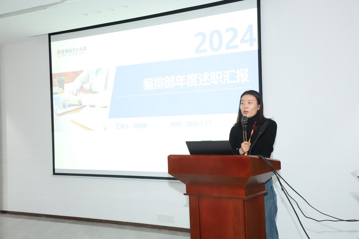 张永华总经理以《坚定信念 逆势增长》为主题,全面总结回顾了文化传媒2024年工作,并对新一年的重点工作和战略发展方向作出安排。各部门负责人分别作2024年工作汇报,以及2025年工作计划。
