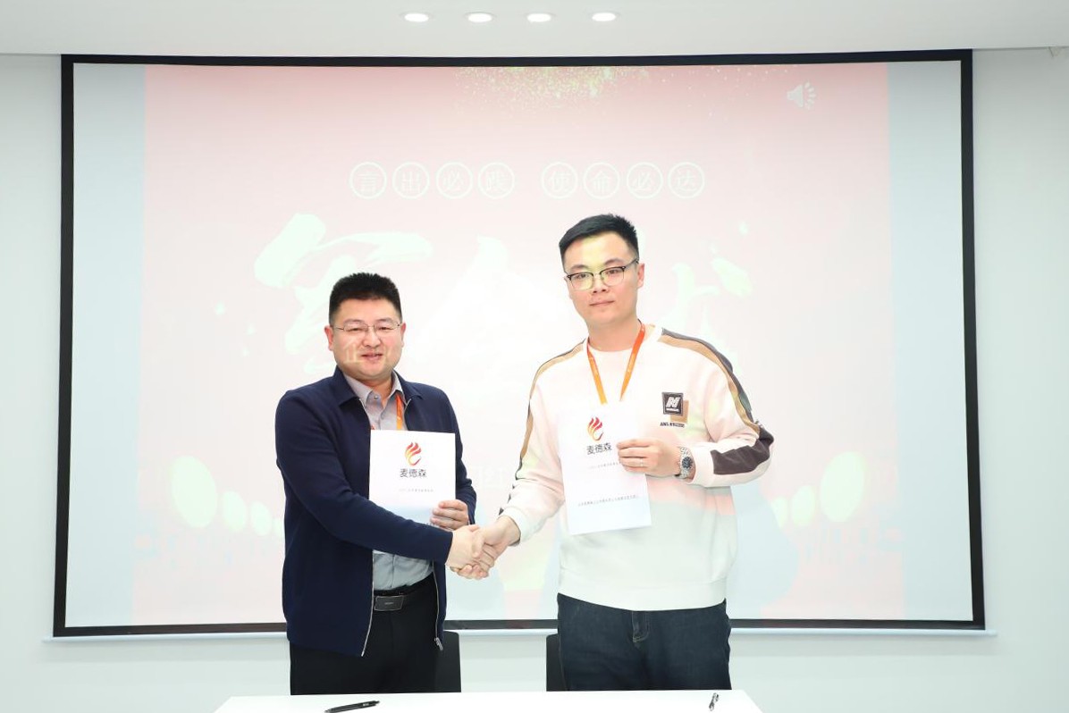 会上,张永华总经理与各部门负责人逐一签订2025年度目标责任书,责任书的签订为麦德森文化传媒在新一年的发展指明了方向。
