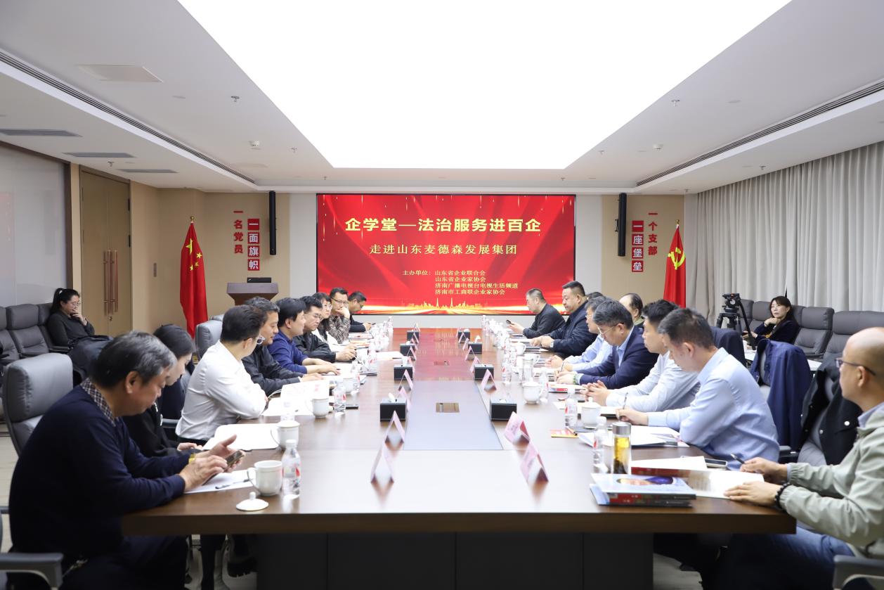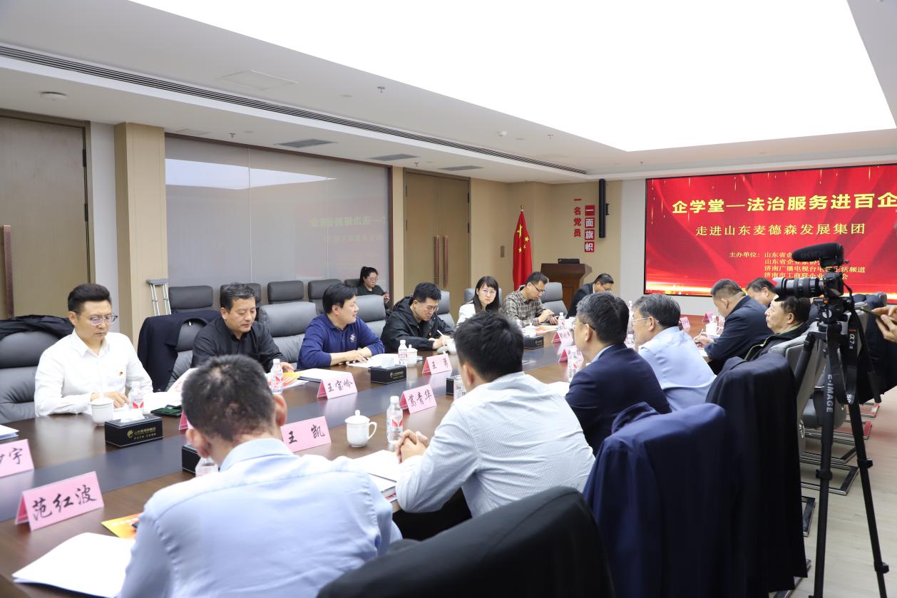 3月24日,“企学堂——法治服务进百企”活动在山东麦德森发展集团产业园圆满举行。山东麦德森发展集团党委书记、董事长王勇,副书记桑守正参加活动。