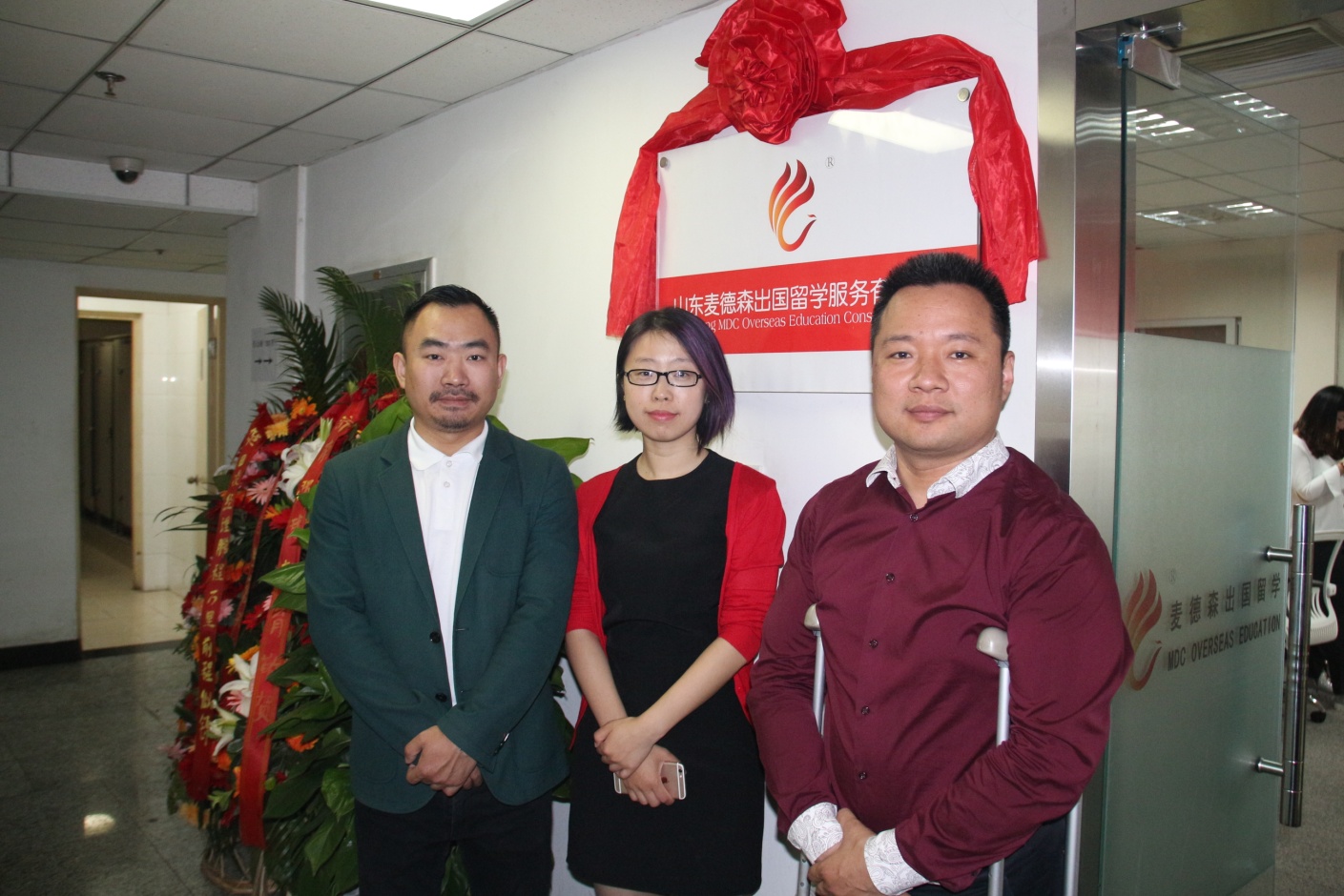 讲话结束,三位领导共同为麦德森留学揭牌,并宣布山东麦德森出国留学服务有限公司正式成立!