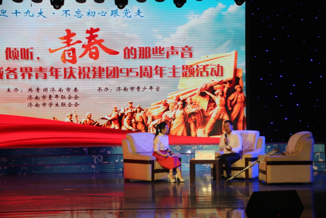在泉城各族各界青年代表的热烈掌声中,“倾听,青春的那些声音——泉城各族各界青年庆祝建团95周年主题活动”正式拉开帷幕。激动人心的颁奖环节、精彩纷呈的节目演出激荡起了在场青年 “以泉城青年为傲”的强烈感情;倾听青年代表的声音,让全场观众深受启发并为之动容。