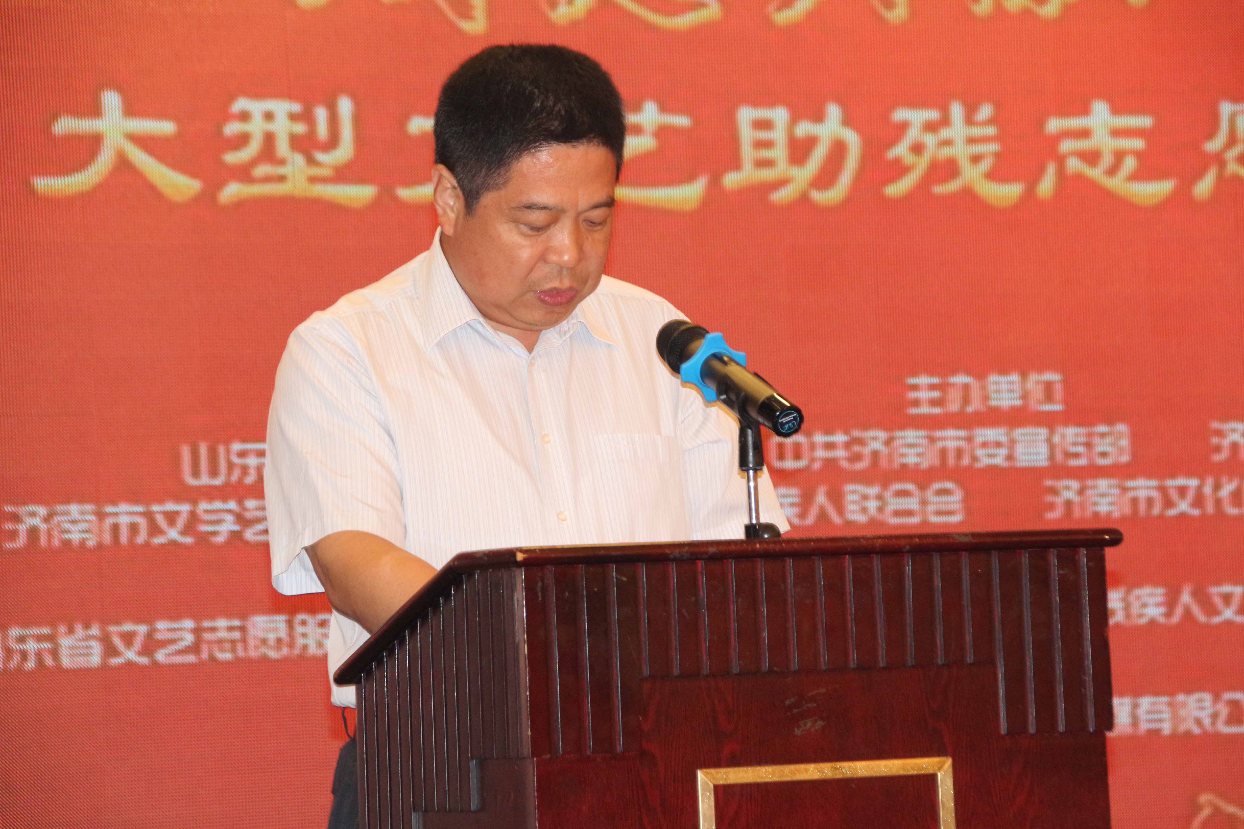 为了丰富大家的精神文化生活,在墨香四溢的活动现场,济南电视台著名主持人阿庆哥助力主持,刘庆丰、张云峰、刘立壮、盖娟、孟晓宇等艺术家表演的舞蹈、魔术、二胡齐奏等节目,博得了阵阵热烈的掌声。最后,山东省文联党组成员、副主席矫红讲话,他指出,今后全省广大文艺工作者将继续积极投身于对残疾人群体的关心支持,广泛开展慰问演出、艺术辅导与培训等形式多样、内容丰富的文艺志愿服务活动,积极探索文艺助力、精准扶残助残的志愿服务新模式。