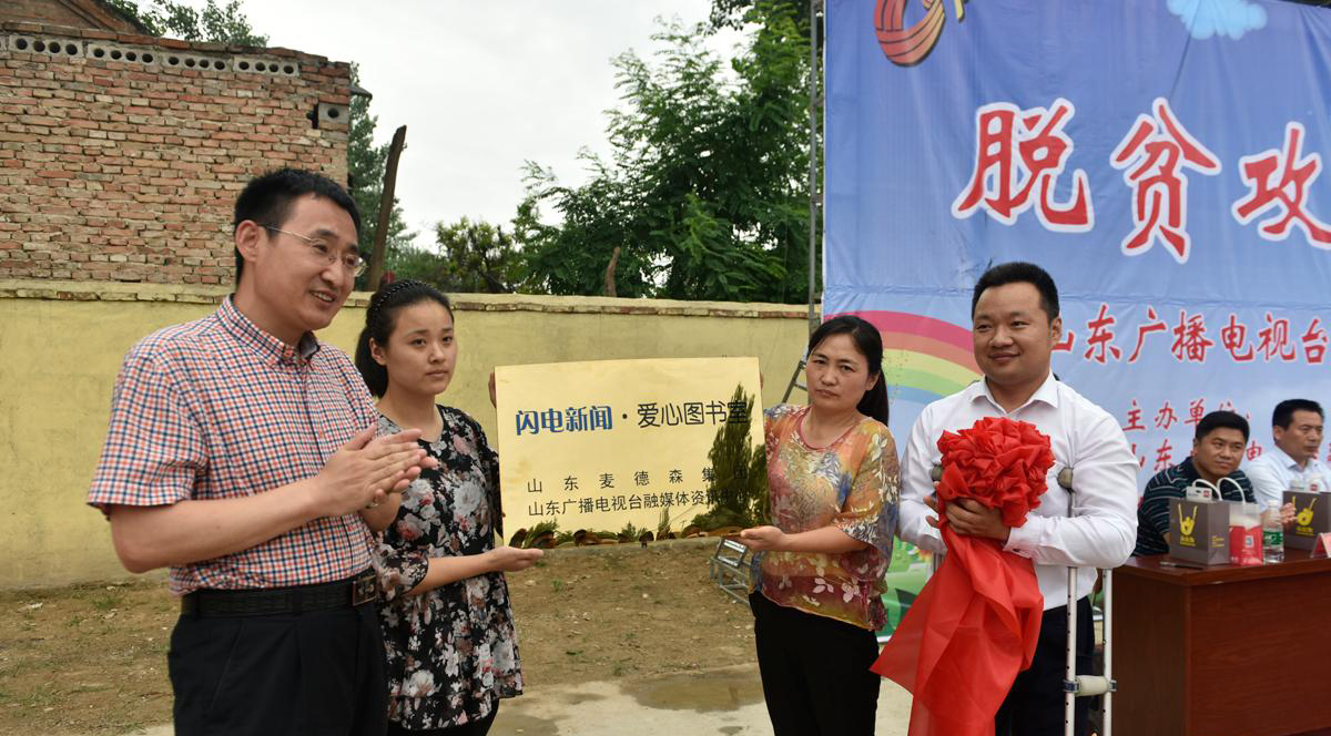 为深入贯彻落实省委、省政府关于文化、科技、卫生“三下乡”部署安排,提升基层群众尤其是小学生的思想道德素质、科学文化素质和身体健康素质,助力全省脱贫攻坚和“第一书记”工作。6月8日下午,山东广播电视台融媒体资讯中心团总支联合开云手机站登入界面等爱心企业,走进山东广播电视台“第一书记”驻村——菏泽单县刘棚小学,为刘棚小学捐赠价值20万元的爱心图书,同时首个“闪电新闻爱心图书室”正式揭牌成立。
