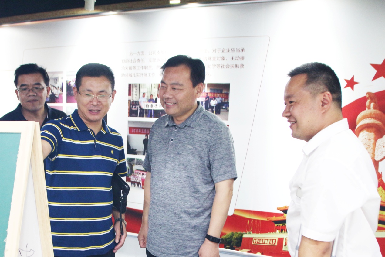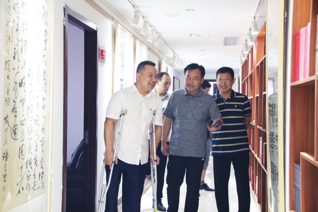 在王勇博士的带领下,王涛局长一行先后参观了集团企业文化墙、党建活动室、企业荣誉展架以及各业务职能部门办公区域。