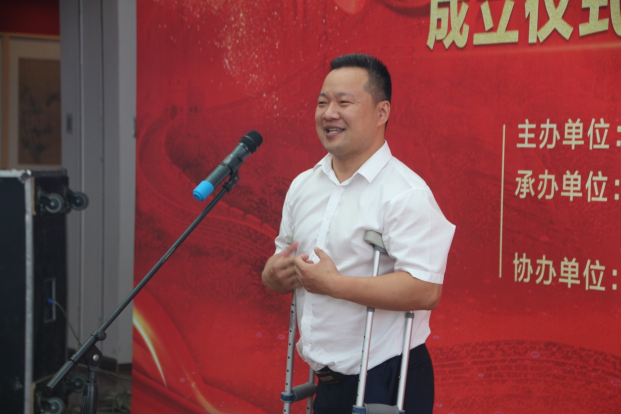 山东省政协原副主席栗甲,山东省齐鲁文化传承发展促进会会长吕民松,常务副会长鞠洪仑等领导和嘉宾出席仪式,秘书长吴东杰主持仪式。济南市残疾人联合会主席团副主席、市残疾人文学艺术界联合会主席、我集团党支部书记王勇博士出席仪式并讲话。