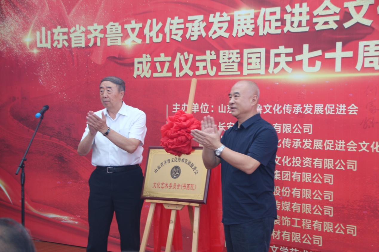活动伊始,山东省齐鲁文化传承发展促进会常务副会长鞠洪仑宣读文化艺术委员会(书画院)成立决定,山东省政协原副主席栗甲,山东省齐鲁文化传承发展促进会会长吕民松为文化艺术委员会揭牌。
