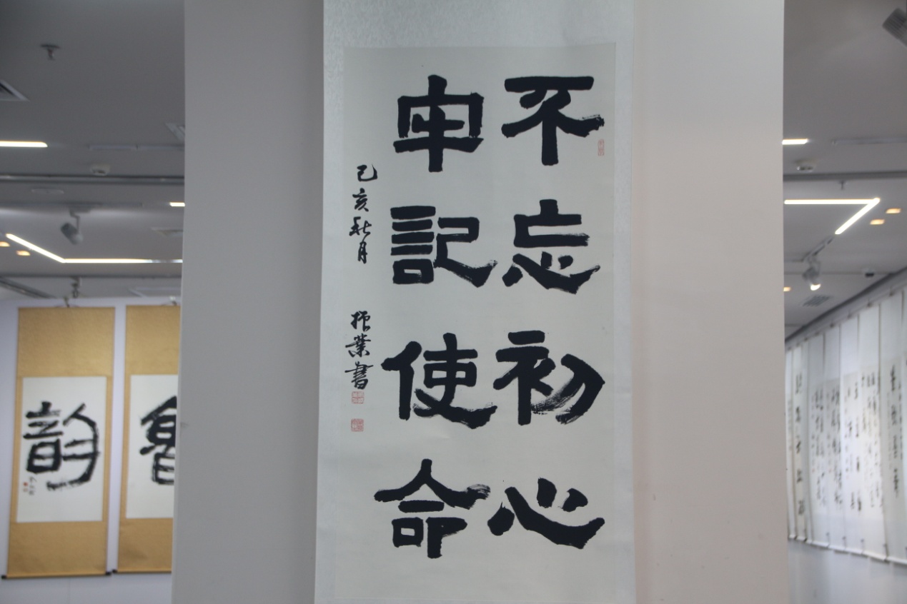 参观过程中,王勇博士带领各位领导来到残疾人书画作品展区,并向领导们逐一介绍残疾人兄弟姐妹的书画作品。
