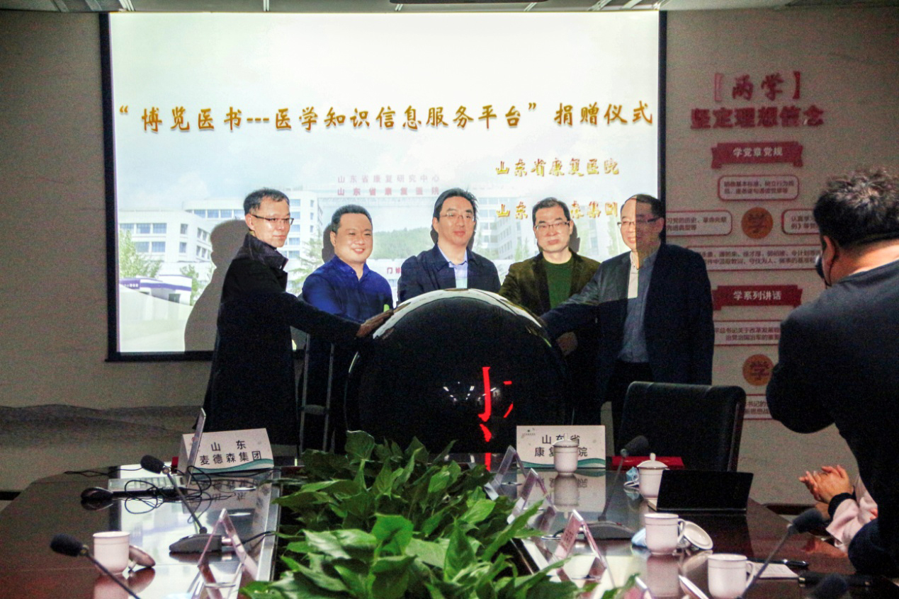 4月9日,由山东省康复医院和我集团联合举办的“关爱生命、爱心传递,博览医书——医学知识信息服务平台”捐赠仪式在山东省康复医院隆重举行,我集团向省康复医院捐赠价值壹佰万元“博览医书——医学知识信息服务平台”资源,以支持院方中医领域的发展,并建立战略合作协议。
