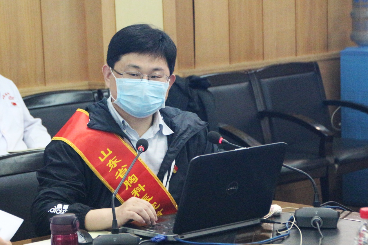 山东省首批援鄂医疗队副队长杨汝燕在援鄂事迹报告中向大家详细介绍了她所在医疗队的情况以及在黄冈大别山区医疗中心期间救治患者的经历,她谈到,援鄂工作期间的工作强度比较大,感染风险同样比较大;不仅患者的压力大,医疗队队员的压力同样很大,在这个过程中,队员们互相鼓励,提士气、鼓干劲,在工作中不断提升凝聚力;同时,“条件不够、智慧来凑”,每一名队员都在出谋划策、每一个人都有责任担当,“人心齐、泰山移”!援鄂医疗任务的完成有赖于每一名队员的付出和奉献。