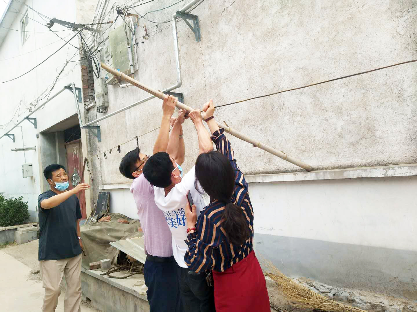 活动中,队员们了解到,当地村民习惯在街道房屋之间系绳做成晾衣杆,方便进行晾晒衣物及被褥;庭院门口堆放柴禾或者摆放一些瓦片,方便后期的家中使用……这些不良现象造成了街道不美观,妨碍正常村居的出行,部分街道需要进行整改。