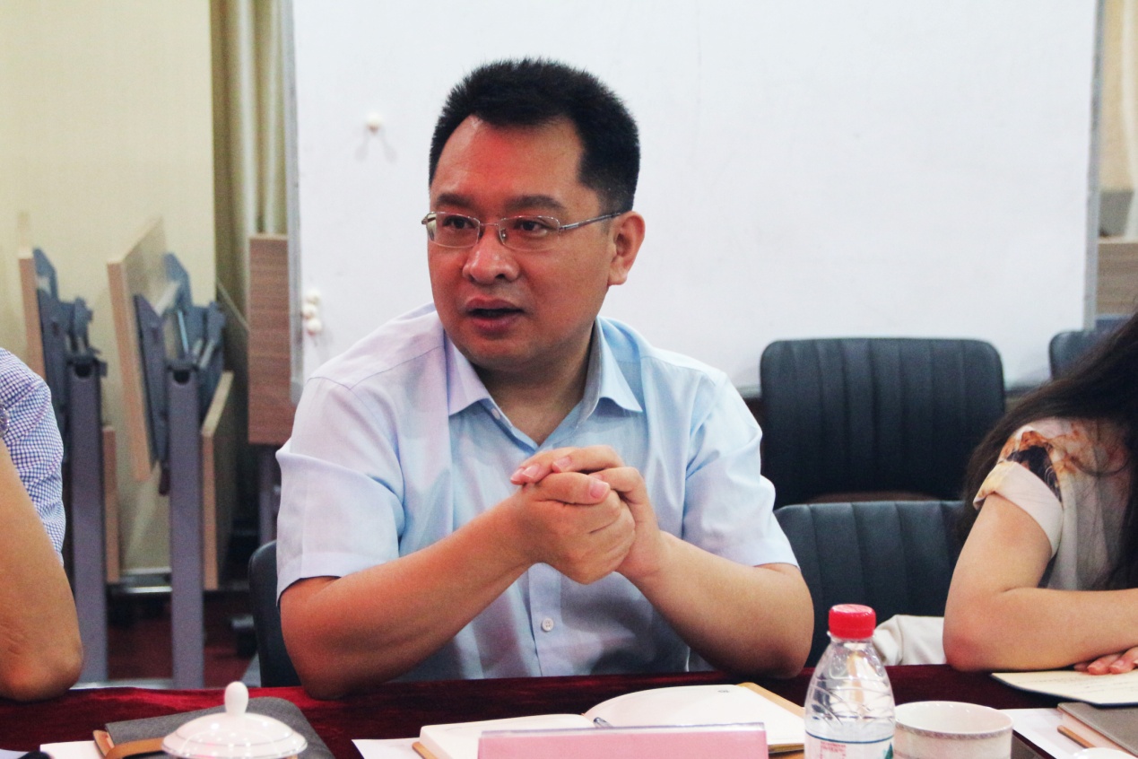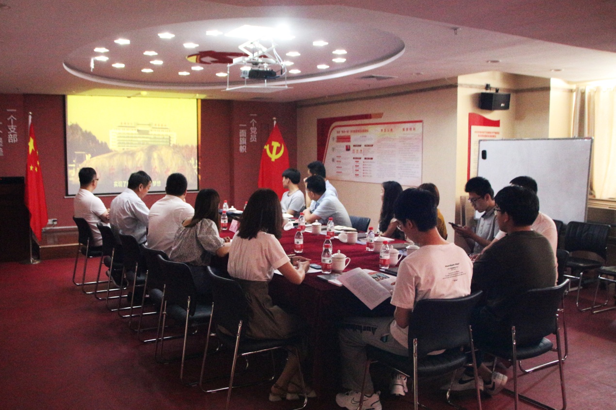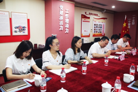 在党群活动室,高庆军部长一行与我集团党支部成员进行交流座谈。