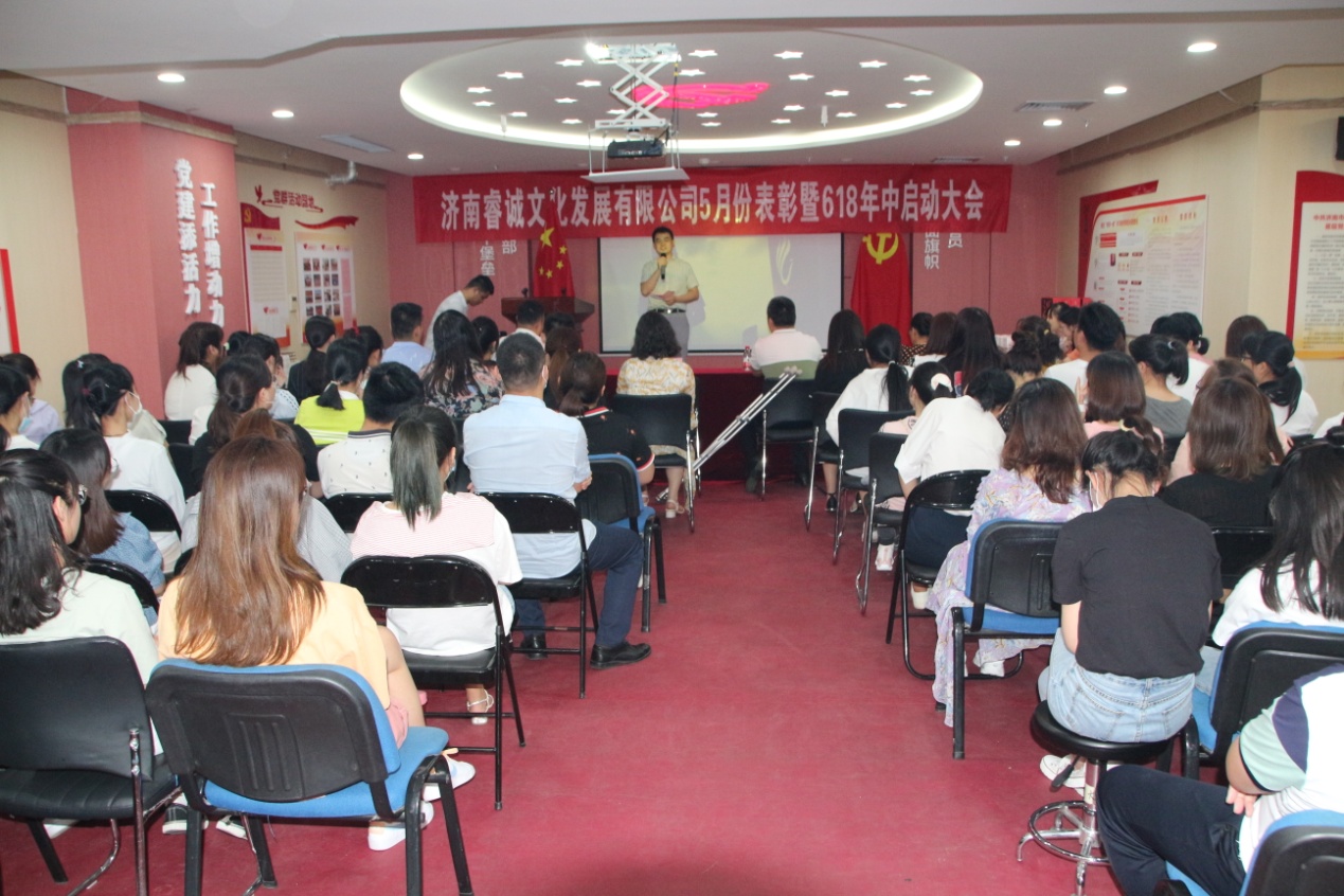 2020年即将过半,我集团旗下睿诚文化发展有限公司在过去的三个月里再创佳绩。6月11日,“济南睿诚文化发展有限公司5月份表彰暨618年中启动大会”在总部多功能会议室隆重举行。党支部书记王勇博士、执行董事王兴法、财务总监杨艳春等集团领导出席大会并为获奖同事颁奖。