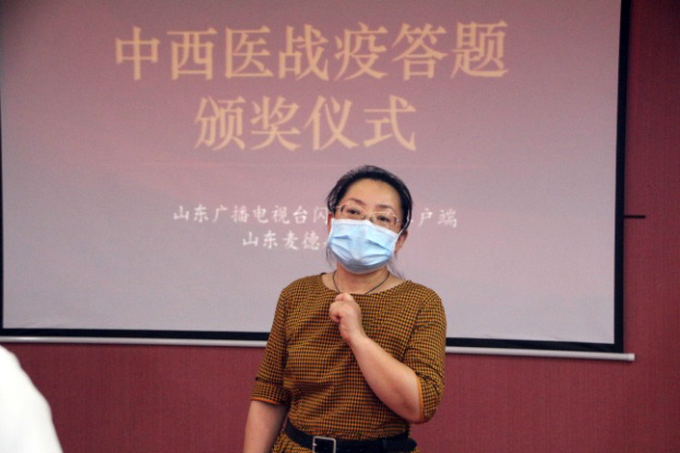 6月4日,“中西医结合战疫答题”颁奖仪式在我集团党群活动室隆重举行。山东广播电视台闪电新闻相关负责人出席颁奖仪式并为获奖人员颁奖,我集团党支部书记王勇博士出席颁奖仪式并对本次活动开展情况进行详细介绍,集团党支部副书记桑守正主持颁奖仪式,获奖人员代表、企业员工代表、媒体记者等参加活动。